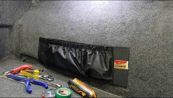 به راحتی با چسبک زبر به نمدی صندوق بدون هیچ ابزلر سوراخکاری و نصب میچسبد، این کیف طول ۴۵ سانت در ارتفاع ۱۳ سانت با دو محفظه که مناسب برای انواع آجارهای ضروری: پیچگوشتی، آچار تخت، انبردست، سیمچین، آلن، چسب برق، متر و سیم و ... میباشد.